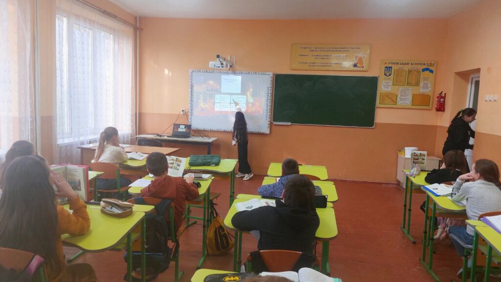 П’ятикласники оволоділи потрібними навичками під час уроку «Як діяти під час пожежі». Після перегляду відеороликів «Що робити під час пожежі», «Правила евакуації», «Як гасити електроприлади» діти виконували завдання квест-вікторини «Мої дії під час пожежі». Завідувач господарчтвом нашого ліцею продемонстрував учням 5 класу пожежний щит та розповів про призначення кожного інструменту в ньому.