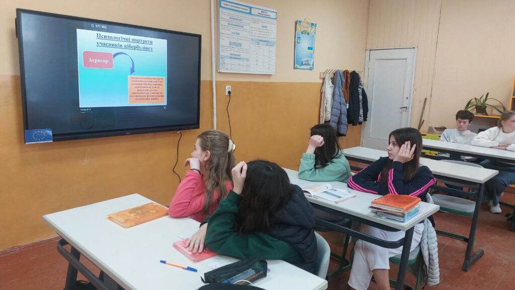 Вчителькою предмету «Основи здоров’я» для учнів 8-Б та 6 класів було проведено урок на тему «Кібербулінг – агресія в інтернеті», під час якого діти ознайомилися з типами агресії в інтернеті, а саме, що таке: анонімні погрози, переслідування в соціальних мережах, тролінг, флеймінг, використання особистої інформації, обмовлення або зведення наклепів, хепісленінг. Як підсумок, діти самостійно розробили правила-поради для подолання кібербулінгу та алгоритмом дій у разі цього явища.