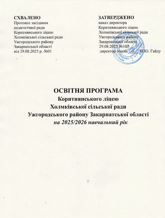 ОСВІТНЯ ПРОГРАМА Коритнянського ліцею Холмківської сільської ради Ужгородського району Закарпатської області на 2025-2026 навчальний рік