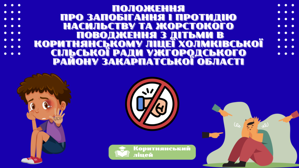 НОВЕ ПОЛОЖЕННЯ про запобігання і протидію насильству та жорстокого поводження з дітьми в Коритнянському ліцеї на виконання Рішення Координаційної ради у справах дітей при Закарпатській обласній військовій адміністрації та Наказу Відділу освіти Холмківської сільської ради