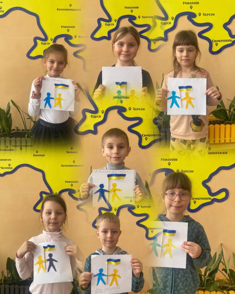 • Флешмоб «Ланцюг єдності» із загальношкільною хвилиною мовчання та виконанням Гімну;