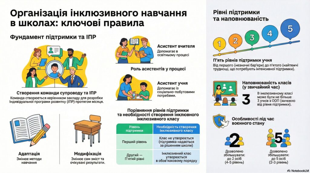 • уточнення та актуалізацію рівнів підтримки учнів з особливими освітніми потребами (ООП) у закладах загальної середньої освіти;