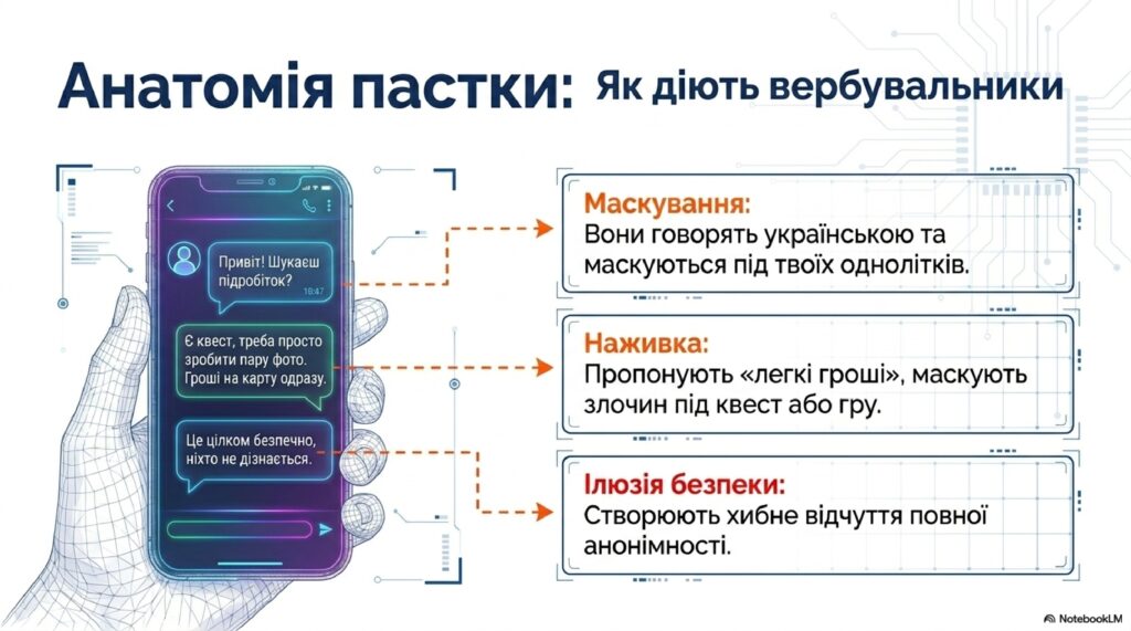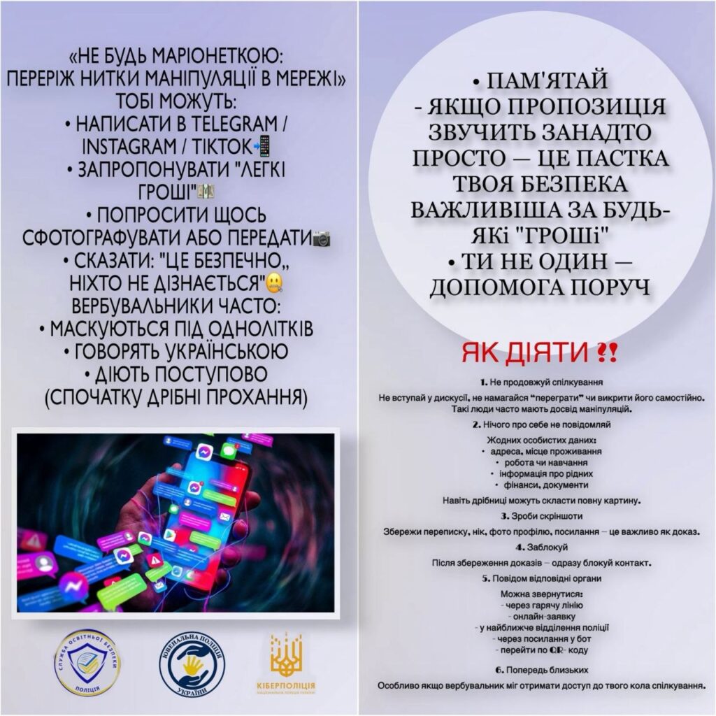 Гості детально розповіли про те, як ворог може завербувати дитину та в подальшому схиляти її до протиправних небезпечних дій, через які канали комунікації це може здійснюватися.