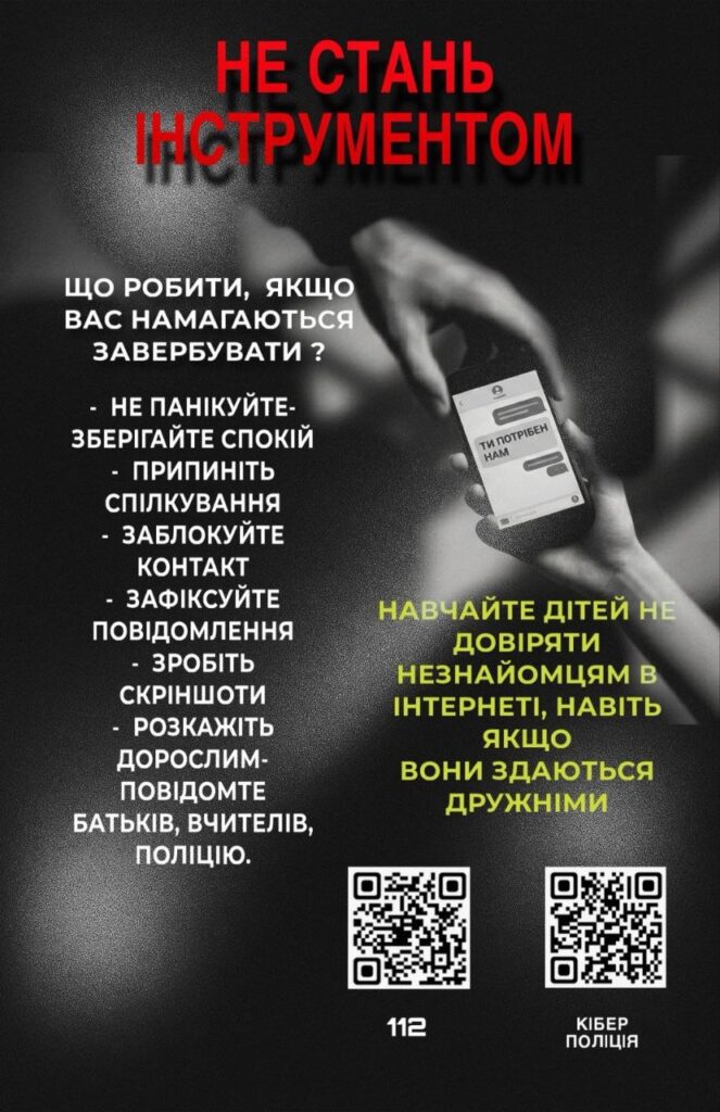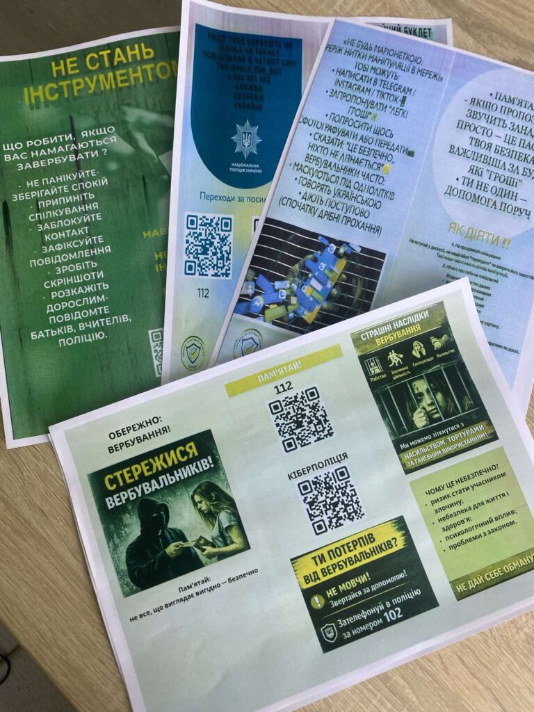 Вході зустрічі було обговорено алгоритм дій для дитини у разі спроби завербувати її. Окремо наголошено на відповідальності неповнолітніх за такі види злочинів.