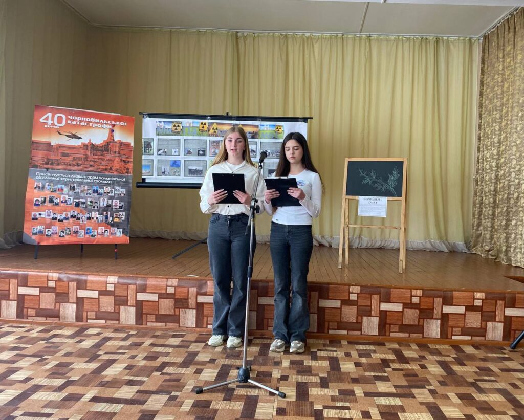 Окрім зазначеного, протягом тижня у навчальному закладі було проведено тематичні виховні години за такими темами: «Подорож до міста, де зупинився час» (1 кл.), «Дзвони пам’яті. Біль Чорнобиля. Маленькі серця пам’ятають велике» (2 кл.), «Чорнобиль – біль і трагедія України» (3 кл.), «Дітям про Чорнобильську трагедію» (ГПД), «Наслідки аварії ЧАЕС у світі та Україні» (5 кл.), «Чорнобиль: біль та скорбота України» (6 кл.), «Чорнобиль 40» (7 кл.), «Чорнобиль – трагедія століття» (8 кл.), «Пам’ятаємо та дбаємо про світ» (9-А кл.), «Чорнобиль 4 років потому» (9-Б кл.), «Дзвони Чорнобиля – трагедія, подвиг пам’ять» (11 кл.). Також у ліцеї було розміщено плакат «40 років Чорнобильської катастрофи», на якому вказано героїв-ліквідаторів наслідків аварії на Чорнобильській АЕС, що проживають на території Холмківської ОТГ. Такі матеріали є дуже цінними, адже дозволяють учням побачити людей-односелячан, що рятували світ від екологічної катастрофи.